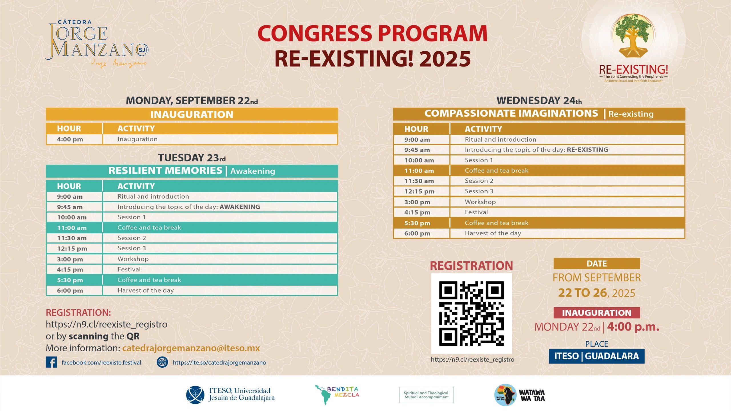 We’re excited to share the key dates of this gathering, where memory, mutual accompaniment, and resistance will bring us together once again.